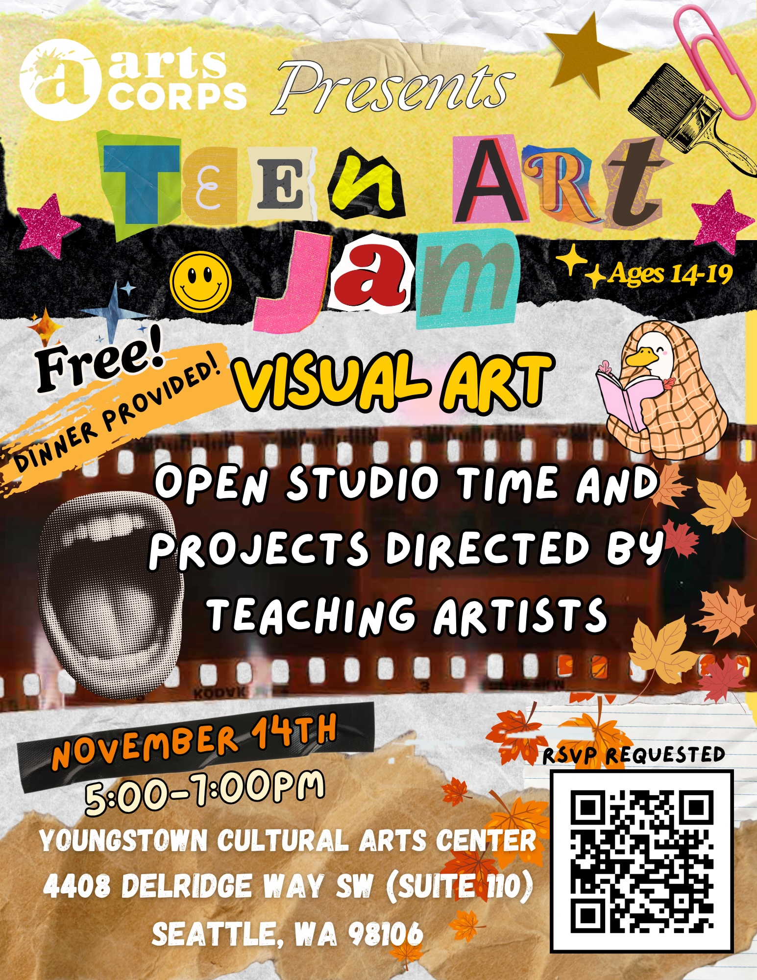 Our next Teen Art Jam is Friday, Nov. 14 led by Teaching Artist Atticus!
